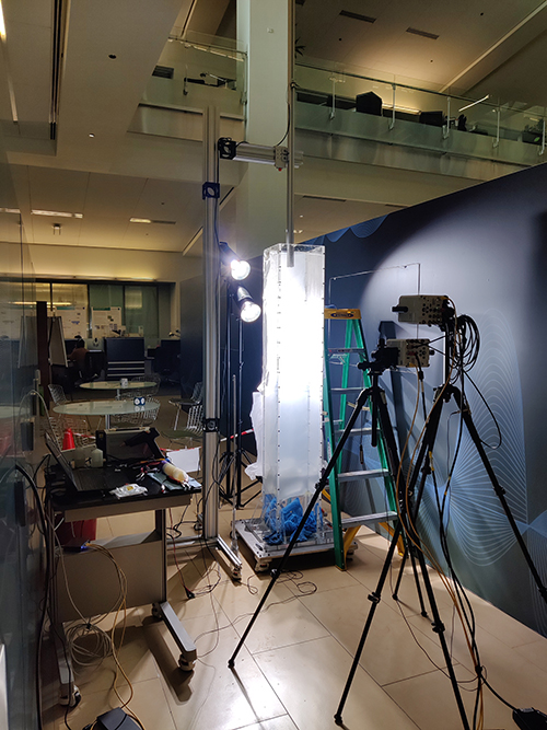 Their lab setup at the Splash Lab included a plexiglass water tank for clear observation, two high-speed cameras capturing every millisecond of impact, bright backlighting for maximum visibility, and remote sensing equipment for precise measurements.